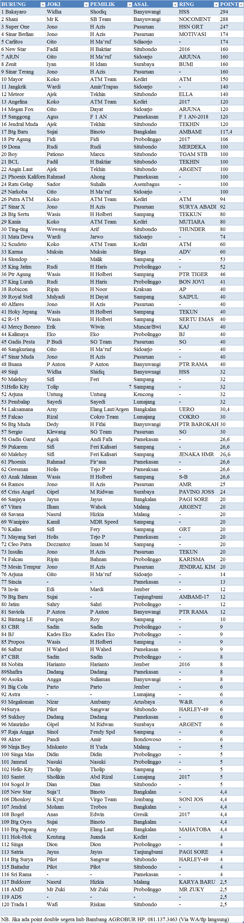 Daftar Juara HomeDaftar JuaraDaftar Peringkat Sementara LJB’18 Put 8 Daftar Peringkat Sementara LJB’18 Put 8 by redaksiweb 23/10/2018 792 Views