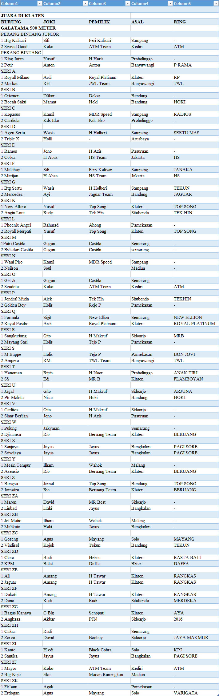 Perhelatan akbar di PPMBSI dengan titel 18 th Anniversary 3-5 Agustus 2018 di trek balap Desa Mlese Gantiwarno Klaten luar biasa. Di lomba Galatama 500 meter jumlah seri yang tergelar 37. “Ini bukti dari makin semaraknya dunia hobi merpati balap di tanah air,” tegas Koneng Sekjen PPMBSI Pusat kepada beritamerpati.com.