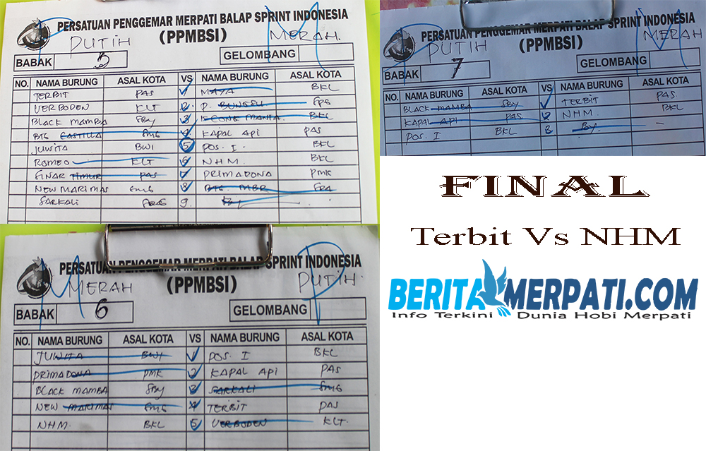 Tepat pukul 16.45 wib, babak final dijalankan. Usai lepas dari tangan pelepas kedua pembalap memacu terbang menuju ke finish. Saling kuntit pun dilakukan. Terbit yang memiliki kualitas terbang dan sprint cepat tetap mendominasi. Jelang tengah lomba, kedua pembalap mulai kelihatan sedikit turun dan melaju kencang.