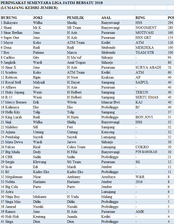 Daftar Juara HomeDaftar JuaraPeringkat Sementara LJB’18 Sampai Jember Peringkat Sementara LJB’18 Sampai Jember by redaksiweb 05/07/2018 913 Views