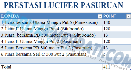 Dua kali menjadi runner up di lomba utama minggu (Situbondo & Pasuruan) dan meraih juara bersama di Pamekasan membuat point Lucifer, pembalap milik Gepeng Pasuruan makin melejit. Sampai putaran ke-5 total point yang didapat 411. Angka kepala empat membuat lawan sedikit berat untuk mengejarnya. Apalagi lomba tinggal tiga putaran yakni Jember, Bangkalan dan Bali.