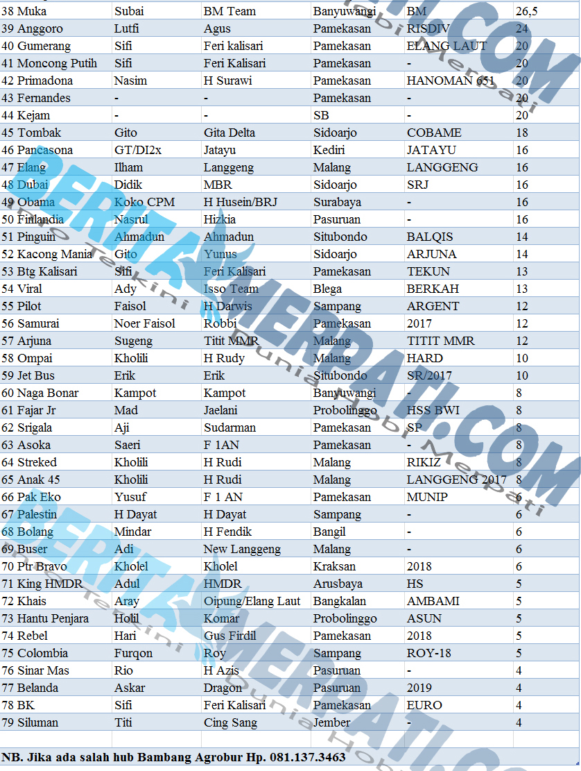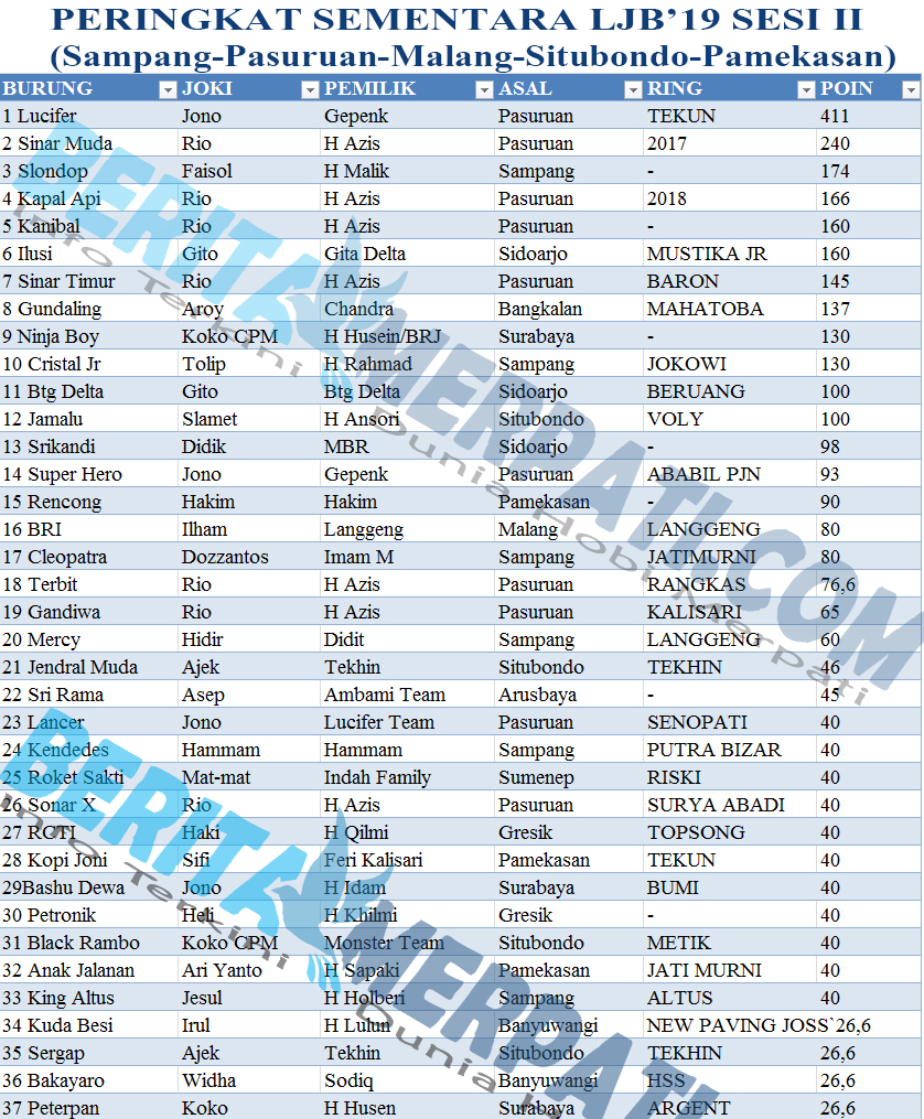 Akankah bakal ada pergeseran peringkat usai lomba putaran ke-6 di trek balap Puger Jember 22-24 Nopember 2019 ?